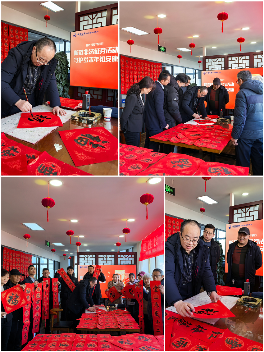 屠苏新酿唤春风,桃符更新映日红。春联作为中华民族传统文化的独特符号,承载着人们对新年的热切期盼和对美好生活的深情向往。一幅幅寓意喜庆的春联,一个个饱含神韵的福字,跃然纸上,散发出浓浓的年味。在为投资者赠送春联、传达祝福的同时,我们进一步加强与客户的沟通交流,完善客户信息,增强客户与营业部的黏性。活动现场,墨香四溢,其乐融融,对于一些不方便来营业部现场的客户,我们登门拜访,送去节日关怀。