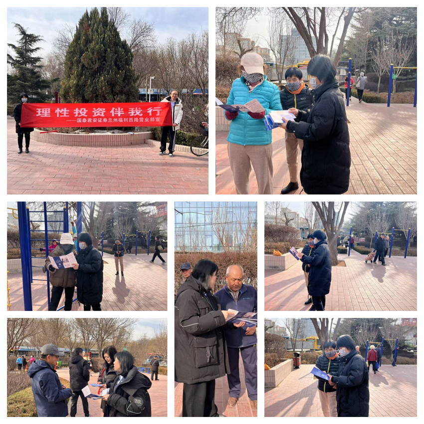 为了增强社区居民的风险防范意识,2月27日,国泰君安证券兰州福利西路营业部组织工作人员来到了位于营业部附近的小公园,开展了一场主题为“防非知识进公园-理性投资伴我行”的宣传活动,希望通过我们的宣传将“天上不会掉馅饼,高利保本是陷阱”的理念带到更多居民的身边。小公园作为附近居民日常锻炼身体、下棋打牌的聚集地,吸引了大量周边居民,尤其是老年群体,他们往往是非法金融活动的主要目标。