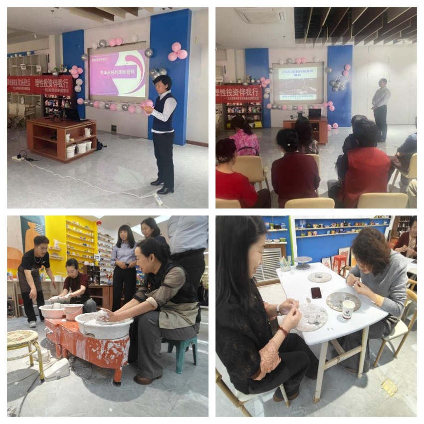 随后,便是充满乐趣的陶艺制作环节。在陶艺老师的指导下,女性客户们纷纷动手,将手中的陶土塑造成各种独特的形状。有的精心制作优雅的花瓶,有的专注于小巧玲珑的摆件。在这过程中,大家不仅感受到陶艺创作带来的心灵愉悦,更奇妙的是,投资知识仿佛也在指尖的灵动中得以沉淀。正如制作陶艺需要耐心与专注,投资同样需要长期的坚持与理性的判断。
